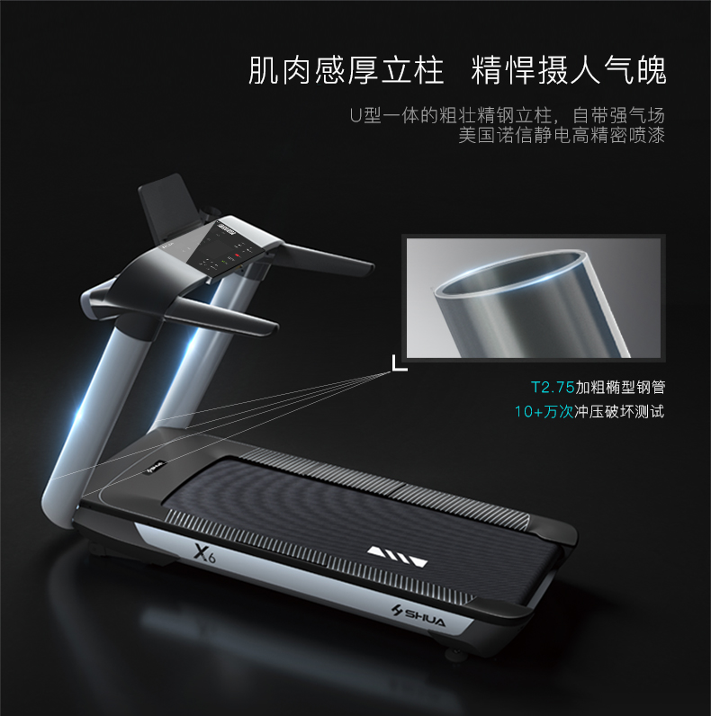 波胆官方网站体育推荐健身器材-舒华商用电动跑步机SH-T6500拥有10.1寸IPS高清触摸屏、Z型动感时尚外观设计、70×150mm精钢立柱机身、F级高效静音马达、520mm商用豪华跑带和35mm双层全跑台减震跑板等优势,让您享受科学跑步。
